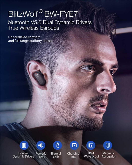 Wireless Blitzwolf BW-FYE7 Bluetooth 5.0 Dual Dynamic Driver In-ear Earphone Portable Charger Box 3D Stereo Bass Call Earbud