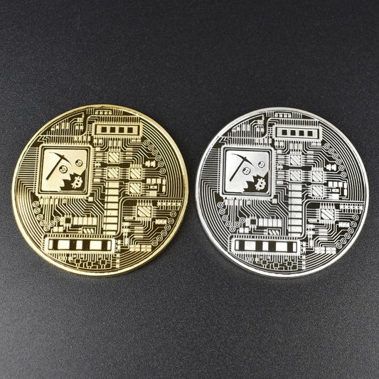 Commemorative Metallic Bitcoin Collection Coin Keychain and Banknote for Gifts and Souvenirs