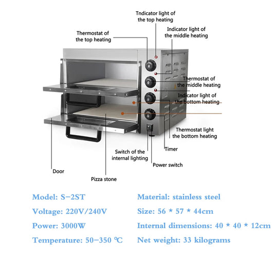Double Layer Electric Pizza Oven - Stainless Steel 220-240V