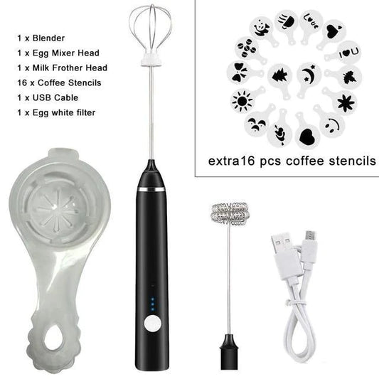 Black Automatic Whisk Rechargeable Foam Maker For Kitchen Use